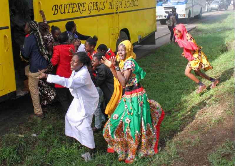 Students of Butere Girls High School returned to their school visibly shaken and emotionally drained after being barred from performing their play, "Echoes of War", despite a court order reinstating them.