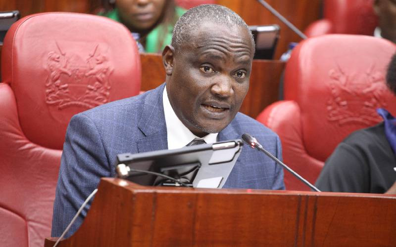 National Treasury CS John Mbadi before the Senate Committee on Labour and Social Welfare, in Nairobi, on August 20, 2025. [Elvis Ogina, Standard]