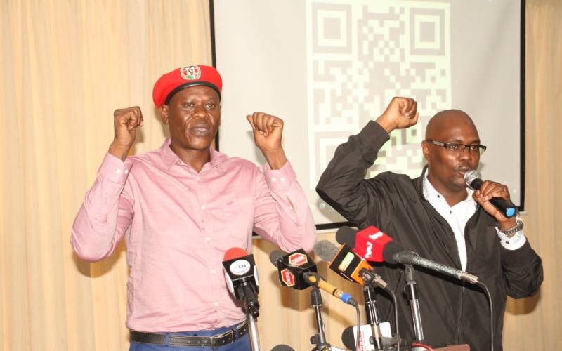 Activist Bob Njagi and Kenya Human Rights Commission Executive Director Davis Malombe during the launch of "People Power Under Attack" in Nairobi on December 9, 2025. [Edward Kiplimo, Standard]