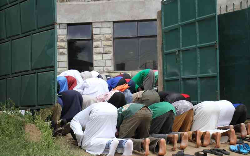 Prayers for the late Standard Media Group senior videographer Rashid Idi underway at Masjid Jamia Salama in Kibera on December 26, 2025. [Edward Kiplimo,Standard]