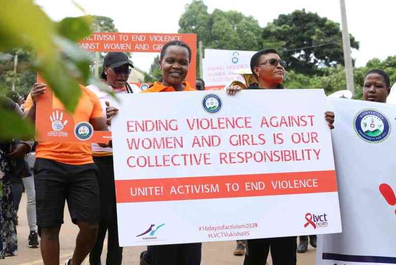 Gender Based Violence survivors and stakeholders match in Kisii town during the launch of 16 days of Gender Activism.(Sammy Omingo, Standard)