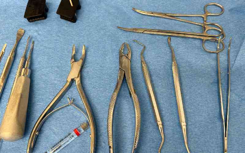 Surgical instruments on a tray. [AFP]