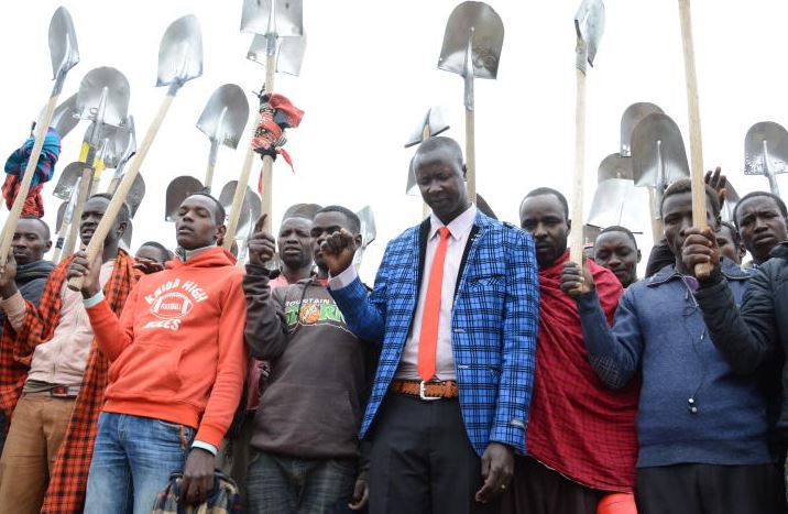 Some of the youths involved in sand harvesting in Mai Mahiu, Naivasha. [Antony Gitonga, Standard]