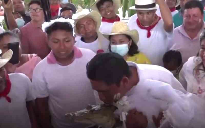 A small-town Mexican mayor married his alligator bride in a colorful ceremony as traditional music rang out and revelers danced while imploring the indigenous leader to seal the nuptials with a kiss.