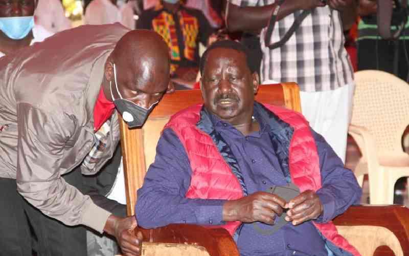 ODM leader Raila Odinga with his bodyguard Maurice Ogeta on October 4, 2020, in Kawangware, Nairobi. [File, Standard]