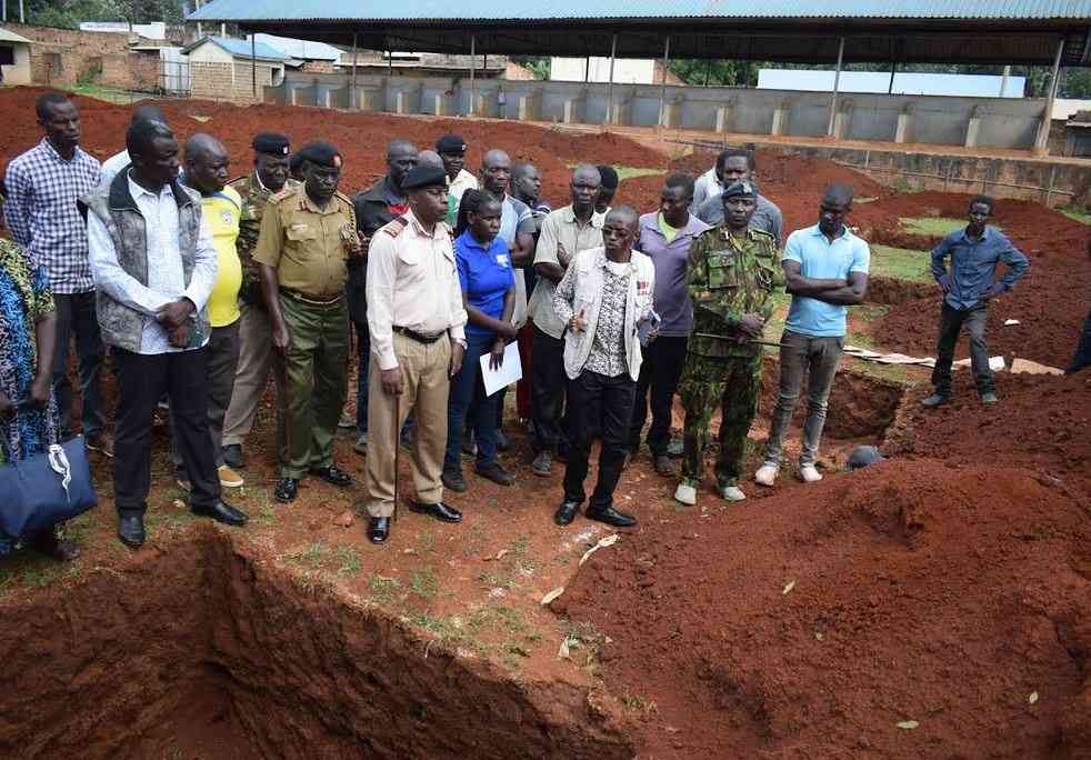 Silvance Osele (in specs) and Homa Bay County Commissioner Ronald Mwiwawi (in uniform) supervising national government projects in Kabondo Kasipul. (James Omoro, Standard)