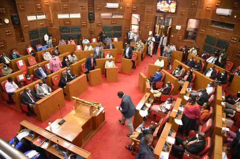 Members of Nakuru County Assembly plenary during debate and passage of Building Bridges Initiative (BBI) Amendment Bill on February 23, 2021. [Kipsang Joseph, Standard]