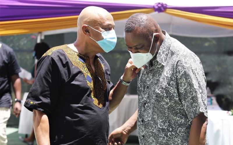 Ethics and Anti-Corruption Commission CEO Twalib Mbarak and Director of Criminal Investigations George Kinoti during the launch of the 2021/2026 National Council on the Administration of Justice strategic plan at Serena Hotel in Mombasa on October 28, 2021. [Kelvin Karani, Standard]