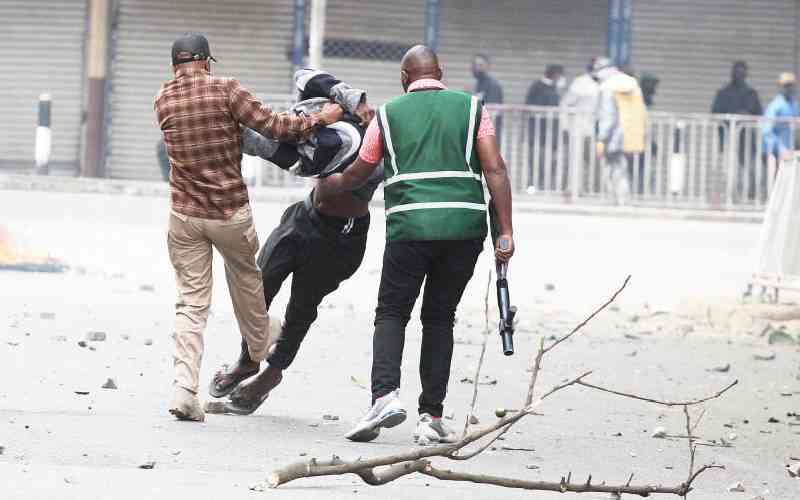 Plain cloth police officers arrest a protester along Kenyatta avenue while protesting against the killing of blogger Albert Ojwang' while in police custody, protesters demand immediate resignation of DIG Eliud Lagat from office. [Jonah Onyango, Standard]