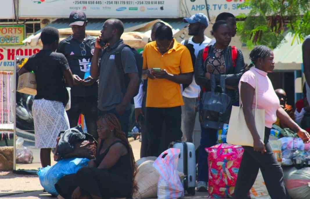 Travellers at Kisumu Bus Park wait for matatus to ferry them home ahead of the festive season, with some stranded for more than an hour. [Rodgers Otiso, Standard]