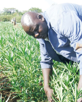 Collins Omondi on his farm in Alego, Siaya. Photo: James Keyi/Standard