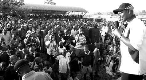 URP leader, William Ruto Addresses a rally in Kilgoris Thursday. [PHOTO: MARTIN TELEWA/STANDARD] |