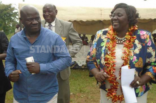 Bungoma County Woman Representative Reginalda Wanyonyi with Bumula Mp Boniface Otsiula at N’goli Secondary School in Bumula Sub County on 21/1/2016.They said that they will support Bungoma Senator Moses Wetang’ula’s presidential bid if he emerges the winner to represent CORD at the nomination stages. (PHOTO: TITUS OTEBA/STANDARD)
