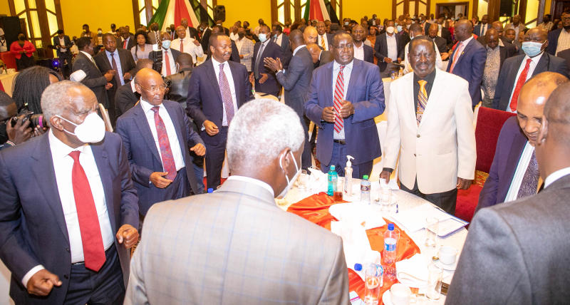 ODM Leader Raila Odinga inner meeting with Mt.Kenya Leaders at Safari Park Hotel. [Emmanuel Wanson, Standard]
