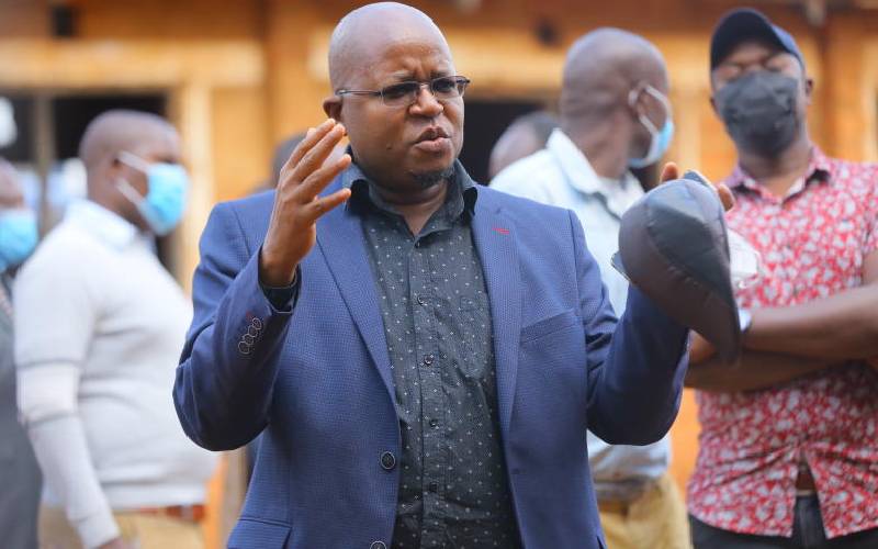 Bonchari MP Pavel Oimeke addresses Nyakungu primary school pupils in Kisii County on July 2, 2021. [Sammy Omingo, Standard]
