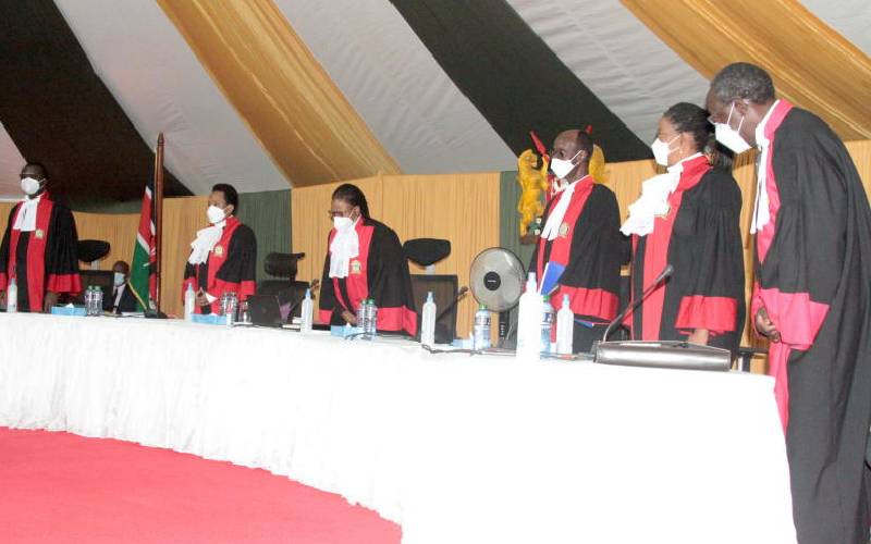 Supreme Court judges led by Chief Justice Martha Koome during BBI ruling at Supreme Court in Nairobi on, March 31 2022. [David Njaaga, Standard]