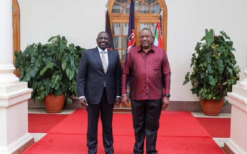 President Uhuru Kenyatta and First Lady Margaret Kenyatta on Monday received President-elect Dr William Ruto and Mama Rachel Ruto at State House, Nairobi on September 12, 2022. [PSCU]