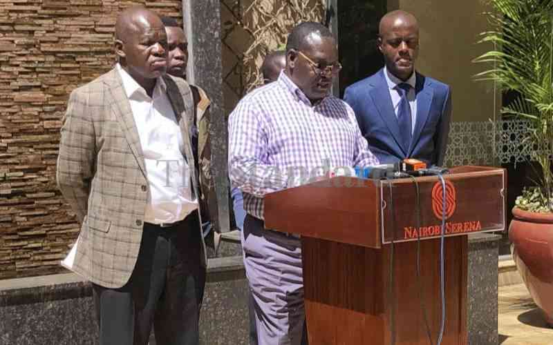 Kenya Nuclear Regulatory Authority chairman Omondi Anyanga during a press conference in Nairobi. [Standard]
