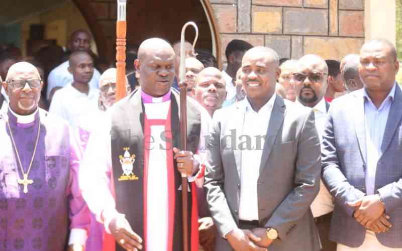 UDA Secretary General Cleophas Malala (third left) at the Anglican Church of Kenya (ACK) - Maseno North Diocese headquarters in Kakamega during a Sunday service on March 5, 2023. [Benjami Sakwa, Standard]