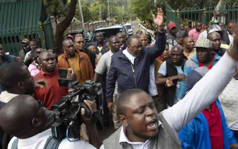 Former President Uhuru Kenyatta when he arrived at Jubilee Party Headquarters after a faction tried to take over on April 26, 2023. [Samson Wire, Standard