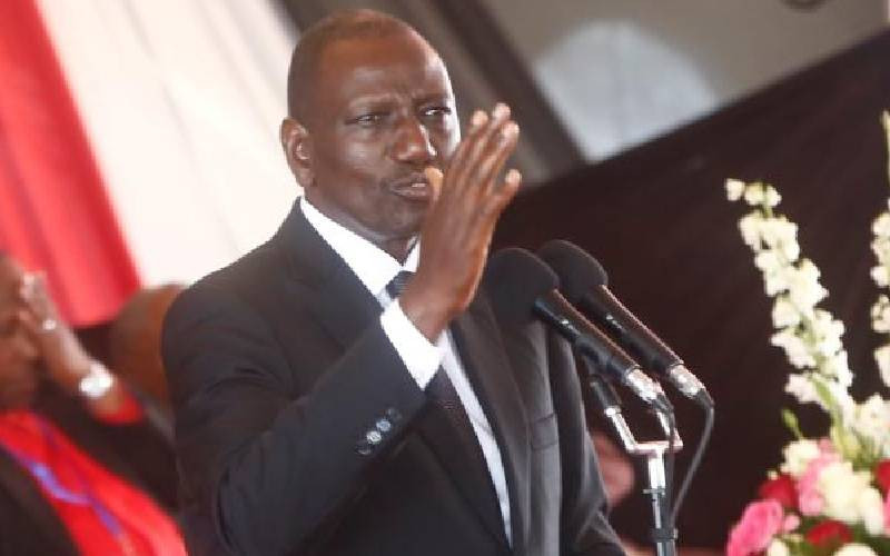 President William Ruto during the burial od the late Mukami Kimathi. [PCS]