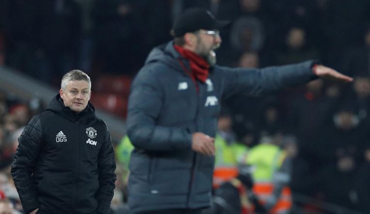FILE PHOTO: Premier League - Liverpool v Manchester United - Anfield, Liverpool, Britain - January 19, 2020. Liverpool manager Juergen Klopp and Manchester United manager Ole Gunnar Solskjaer. [REUTERS/Phil Noble]