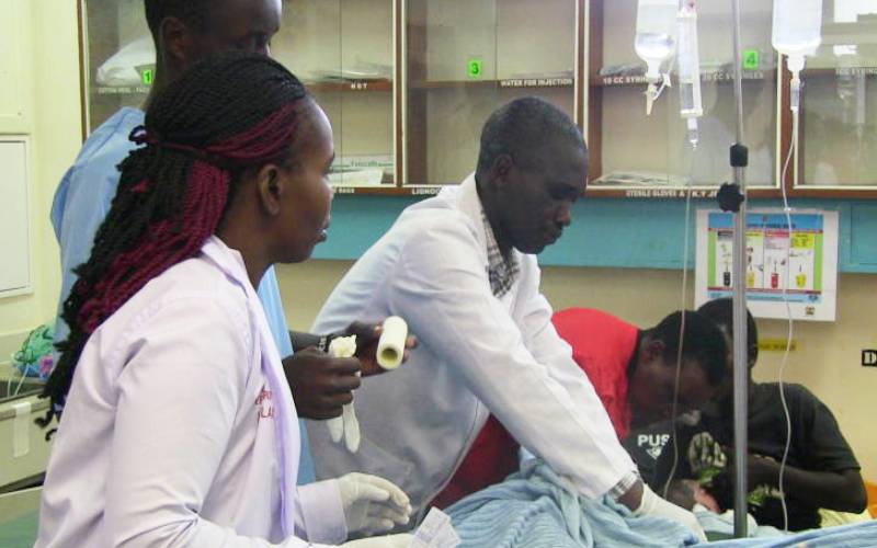 Doctors at the Kericho County Hospital attend to the four children scalded by hot chang'aa. [Standard]