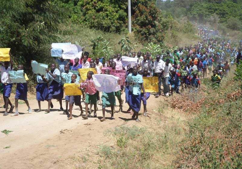 Thousands of learners from over 50 schools in the Kerio valley region during a day-long protests to castigate the government for their inaction to quell the skirmishes and rising insecurity in the Kerio Valley region. [Photo by Eliud Kipsang/Standard]