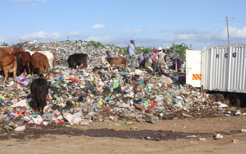 A health crisis is looming at Noonkopir village, where heaps of garbage continue to pile near residential houses. [Peterson Githaiga, Standard]