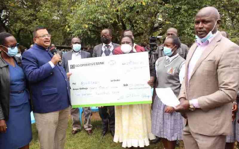 When former Kesses Mp Swarup Mishrah handed over bursary cheques to primary and secondary schools worth Sh32.6 million at Hill School primary school in Uasin GishuCounty on July 29, 2021. [Christopher Kipsang, Standard]