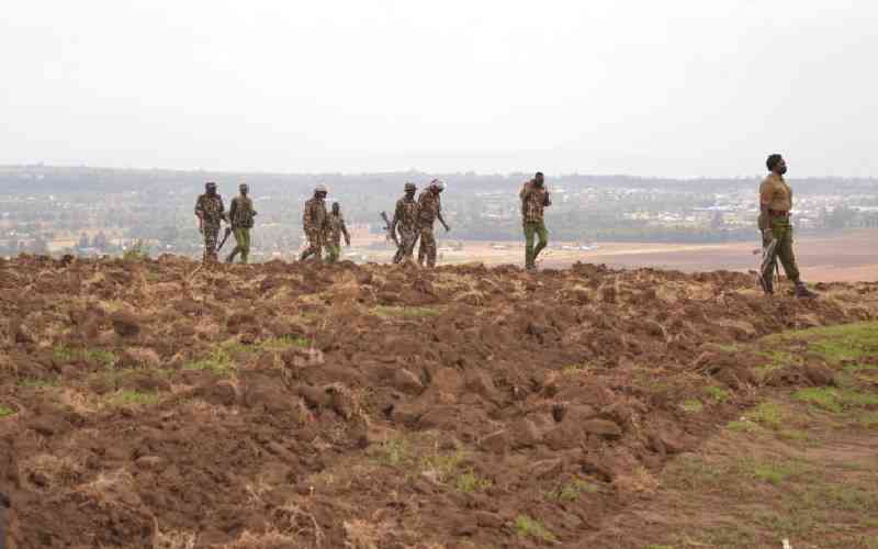 Police officers manning the disputed 2,600-acre land in Njoro, Nakuru. [Daniel Chege, Standard]