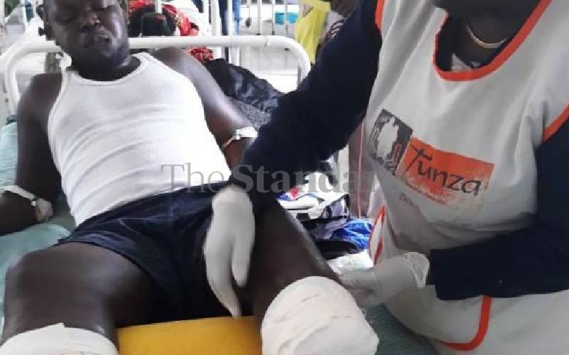 Enock Romano recuperates at Naivasha sub-county hospital after he was attacked by a hippo while fishing in Lake Naivasha seriously injuring his legs. Doctors in the facility had to amputate both legs to save his life noting that they were damaged beyond repair. [Antony Gitonga, Standard]