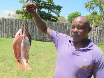 Hussein Mwabori, a fisherman shows his day's catch. He says he could get as much as 30 kgs a day three decades ago.[Photo:GARDY CHACHA/STANDARD]