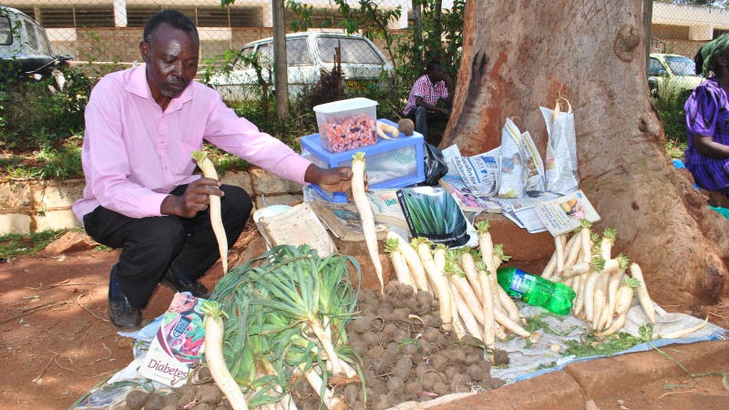He grows them alongside carrots, beetroots and the white radish on his one and half acre farm at Mahondo along the busy Kakamega – Mumias highway.
