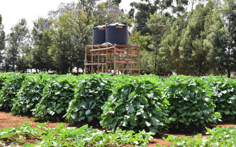 On a quarter-acre piece of land, Thairu has installed multi-storey gardens with stakes on which he grows strawberries, spinach, carrots and onions among other crops.