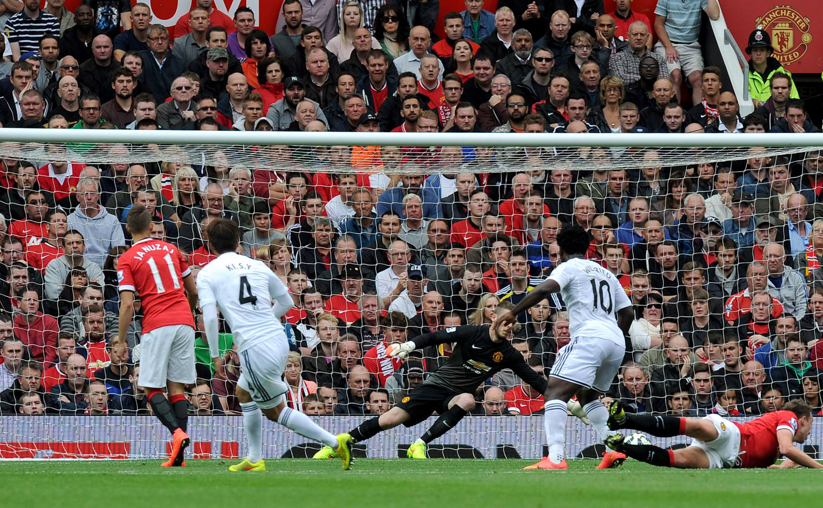 The ability of Wayne Routledge and Nathan Dyer to stretch the United backline was key in putting pressure on the hosts, unbalancing them an preventing them from dominating the game. Then the introduction of speedster Jefferson Montero further served to trouble the tip-toeing defenders, who looked like they might need that three months that Van Gaal has been talking about…