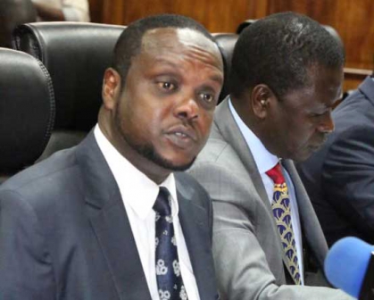 SPORTS CS WARIO APPEARS BEFORE LABOUR COMMITTEE Sports CS Hassan Wario (left) and his PS Richard Ekai addresses the Labour Committee of the National Assemble to discuss the Rio Olympics fiasco at Parliament Buildings 08-09-16 PHOTO MOSES OMUSULA