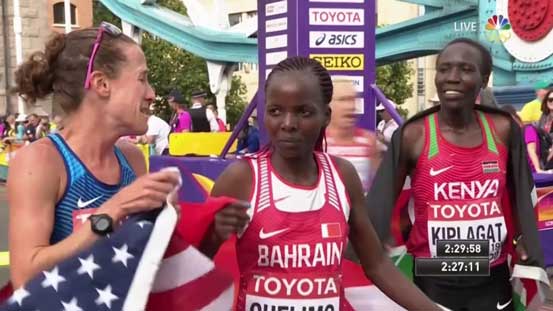 6:40pm Bahrain's Rose Chelimo wins women's world marathon