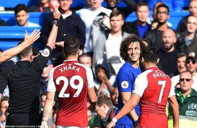 Chelsea defender David Luiz was sent off for an ugly foul on Sead Kolasinac as Arsenal finally emerged unscathed from a trip to Chelsea with a 0-0 draw against the champions on Sunday.