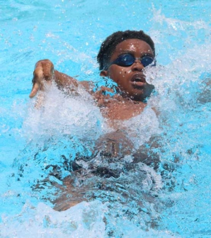 NATIONAL SWIMMING COMPETITION IN MOMBASA Trevin Kameta performs back stroke during the National Age Group and Open swimming competition at Oshwal Academy in Mombasa County on Friday 3rd November 2017. Photo/Kelvin Karani