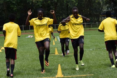 Vihiga Queens Women Premier League side Vihiga Queens training at Mumias Sports Complex before their match against Eldoret Falcons on Nov 5, 2017. [Eric Lungai, Standard]