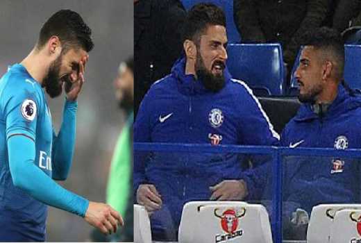 Olivier Giroud 3-1 Arsenal loss loss to Swansea (L) and after signing for Chelsea (R) at Stamford Bridge in 3-0 Bournemouth loss [Photo: Courtesy]