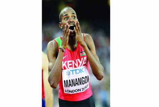 Britain Athletics Worlds Kenya's Elijah Motonei Manangoi celebrates winning the gold medal in the Men's 1500m final during the World Athletics Championships in London Sunday, Aug. 13, 2017. (AP Photo/David J. Phillip)