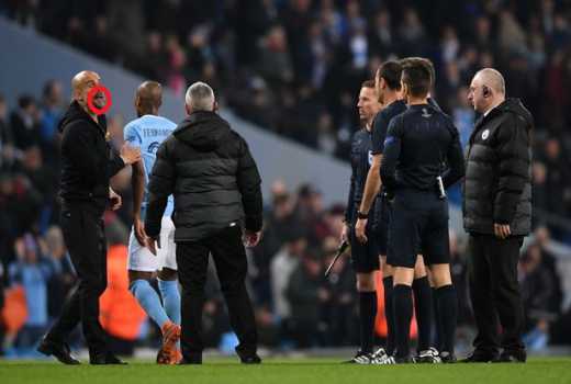 Pep Guardiola has been sent to the Etihad stands for shouting at the referee in Manchester City's Champions League clash with Liverpool.