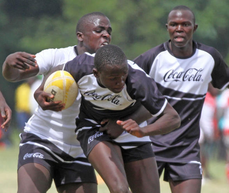 Bwake Friends Schools' Charisma Simiyui from Transzoia (left) challenges Erick Mboya and Ian Ongati (right) of St Marys during KSSSA Term Two games at Hill scool in Eldoret. [Jonah Onyango, Standard]