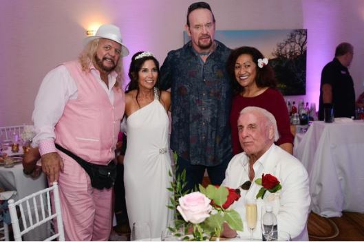And he gave wrestling fans a rare glimpse of his life outside the squared circle as he was pictured at the ‘commitment’ ceremony of fellow WWE legend Ric Flair.
