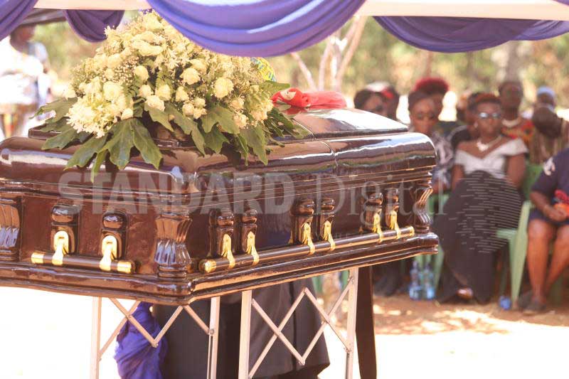 The casket bearing the body of the late James Erick Oduor Radido alias Cobra during his burial at Ukwala village in Siaya county on February 2nd 2018. The deceased was killed by terrorists during the recent DusitD2 Riverside attack in Nairobi. (Collins Oduor, Standard)