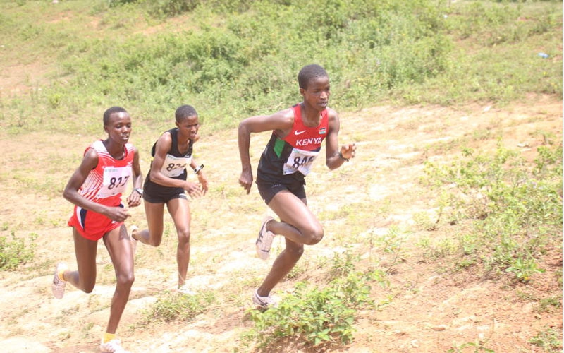 Damaris Areba leads her rivals in the senior women's race during the Nyanza South cross country championships at Kehancha town in Migori on Sunday, February 10, 2019 [Sammy Omingo, Standard]