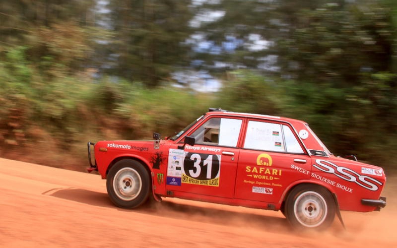 Nish Lakhani and co-driver Teeku Patel seen in action in their Datsun during a past East Africa Classic Rally. [Standard Sports]