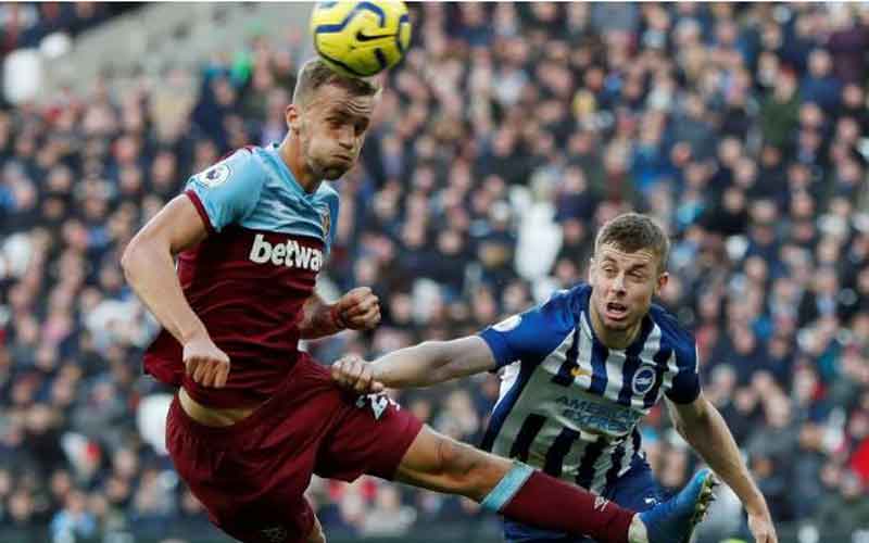 West Ham United's Tomas Soucek in action with Brighton & Hove Albion's Adam Webster [Action Images via Reuters/Paul Childs]